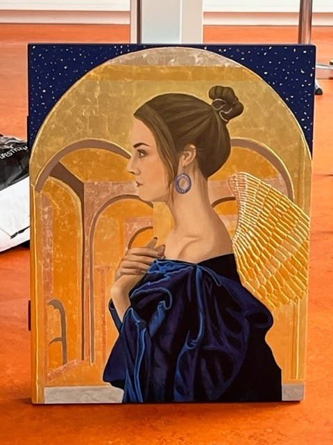 Ei-tempera en vissengoud op een authentiek paneel van 40 x 30 x 3 cm. door Charleen Taribuka in leerjaar 3
