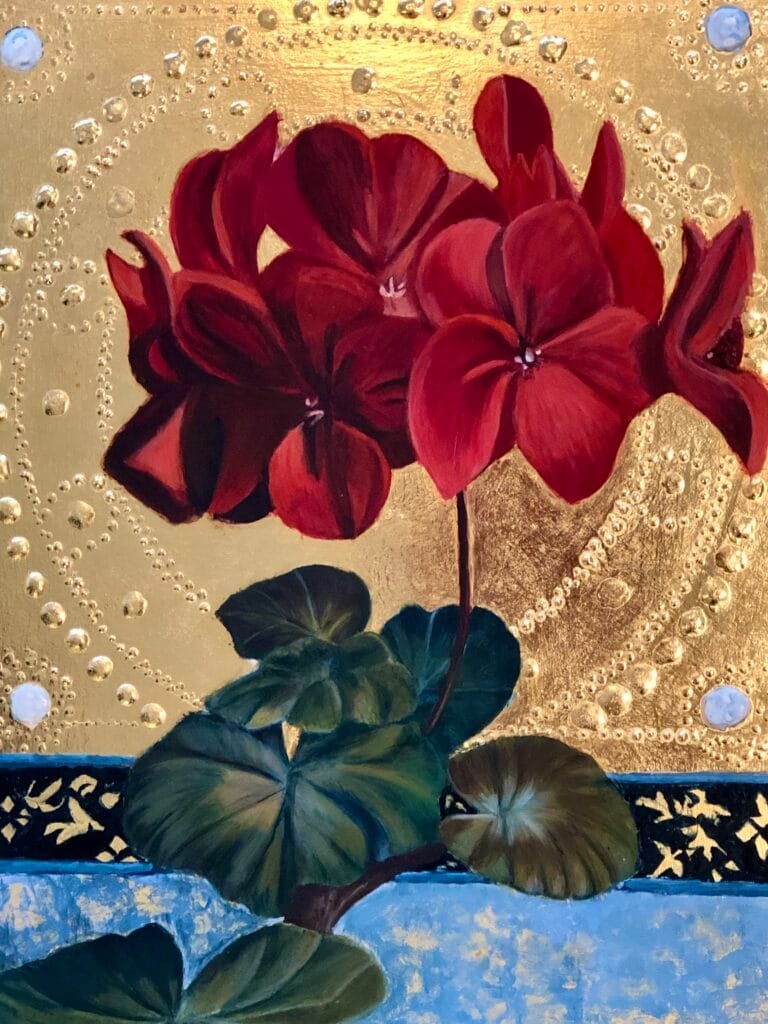 In de Renaissance werd het accent verlegd van religieuze kunst naar onder andere portret kunst. Oude schildertechnieken, voorheen toegepast bij iconen, werden in de ateliers in de Renaissance gebruikt voor het schilderen van portretten met een rijkdom aan stofuitdrukking met en zonder toepassing van goud. Bloemen, ranken met tere blaadjes, ornamenten, ragfijne kleding met gouddraad, haarsieraden, juwelen en rijk gedecoreerde achtergronden. Als je je adem in houdt bij de Renaissancekunst uit Italië en in steden als Brugge, Antwerpen, Gent en het Rijksmuseum in Amsterdam en wel eens hebt gedacht: “jeetje zou ik dit maar eens kunnen!”  dan hebben wij goed nieuws voor je. Wij leren het je. Werkelijk stap voor stap. In een sociaal veilige leeromgeving met een fijn leer klimaat. Waar een hoge ambitie en kameraadschappelijk lesgeven het gouden koppel blijkt zijn. Gestoeld op 10 jaar ervaring. In een woman owned organisatie.