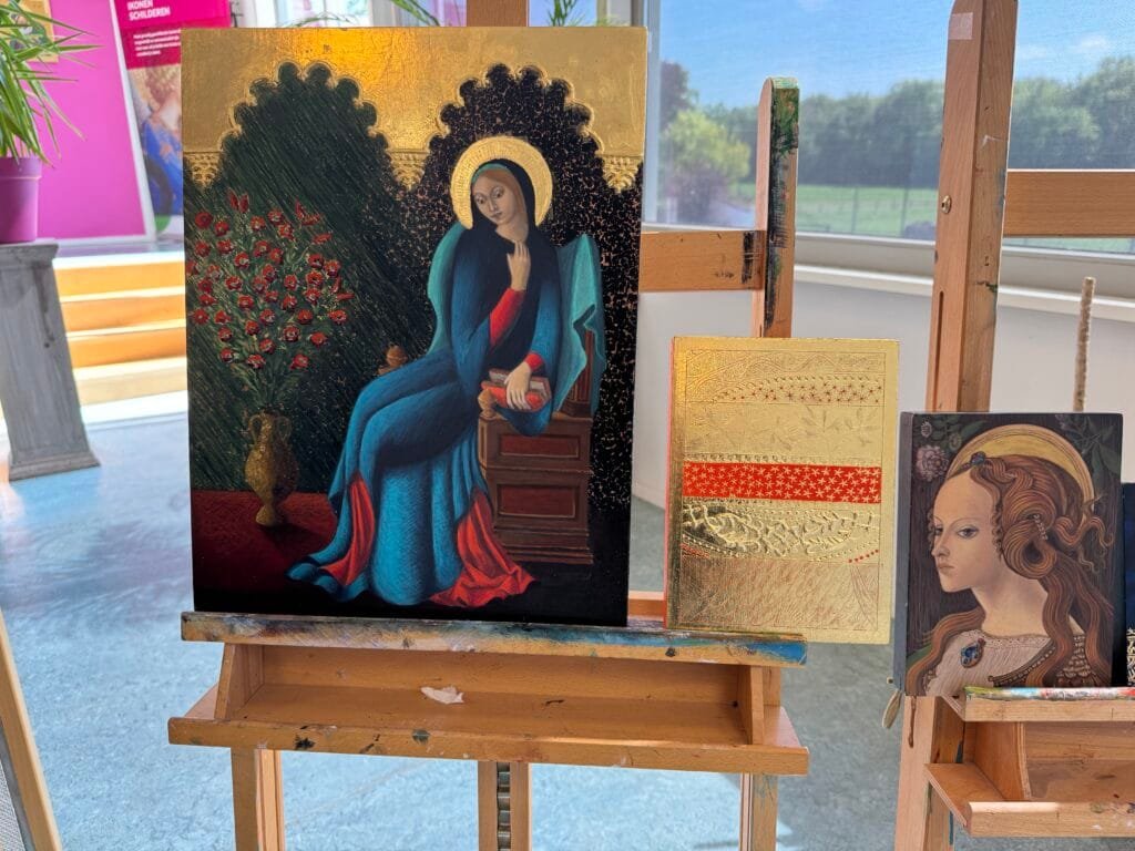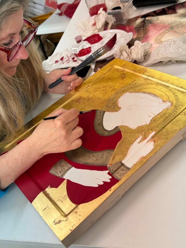 Ei-tempera en 23,75 karaats goud (watergilding) op een authentiek paneel van 45 x 35 x 3 cm. door Marianne van den Dungen in leerjaar 2