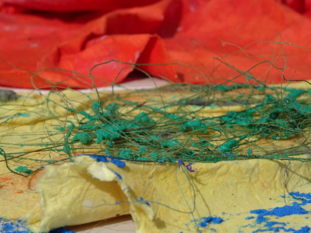 Zodra je hebt besloten om mee te doen start met het verzamelen van materialen. Wellicht heb je een vracht aan dingen die je al jaren bewaard en nu eindelijk van pas komen. Denk bijvoorbeeld stukken papier, gerafeld karton, gedroogde planten, gedroogde bloemen, wol, katoen, mooie stoffen, metalen als koper, zilver of goud, zilver of koper, foto’s en scheursels.